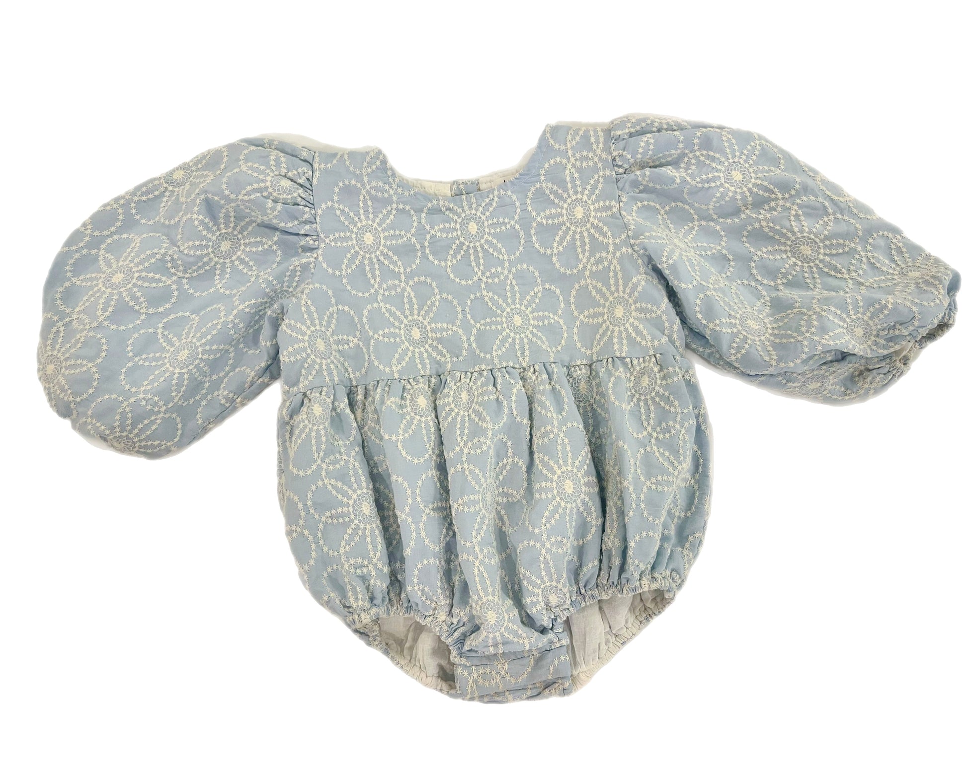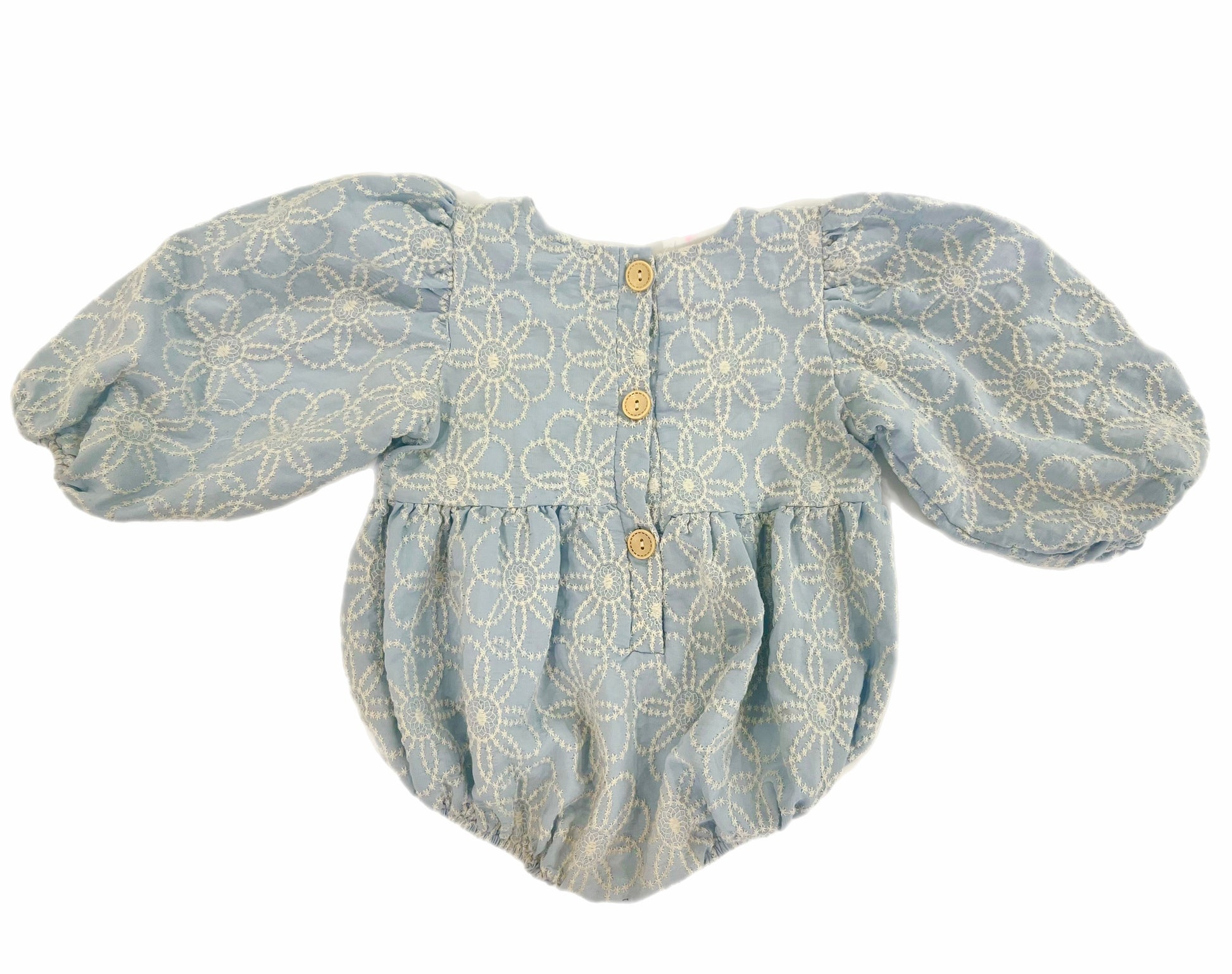 100% cotton with lining underneath. Perfect for the cooler day and nights . 3 wooden buttons at the back with beautiful puff long sleeves. A large bow to finish off the back .